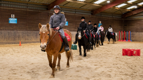 Au centre équestre du château des Vaux, Ludovic et ses camarades s'entraînent à monter au pas et au trot. © Besnard/Apprentis d'Auteuil