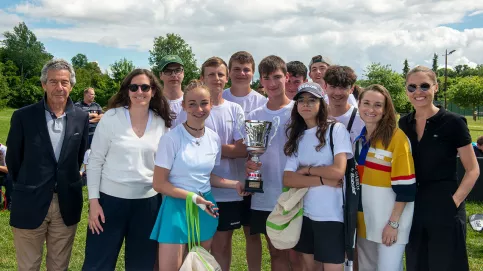 Joueuse de fond de cour au coup droit dévastateur, Andréa a livré une bataille courageuse contre Romain, grand gaillard de 16 ans classé 15/3, venu du Château des Vaux près de Chartres. « Je pratique ce sport depuis dix ans. Toute ma famille joue au tennis », commente à chaud le vainqueur du tournoi. Venue assister aux échanges, la comédienne Lilou Fogli, administratrice de la Fondation Lacoste (actuellement à l’affiche du film C’est magnifique ! de son époux Clovis Cornillac qu’elle a coécrit), laisse éclater son enthousiasme. « Venir voir sur le terrain le sourire de tous ces jeunes ça me galvanise ! » Pour Andréa la récompense est double puisque son lycée remporte cette année la coupe et avec elle ses camarades et leurs animatrices Stéphanie Mirault et Patricia Louvel qui encadrent leurs champion(ne)s. Rendez-vous au printemps prochain pour une nouvelle édition du tournoi et la remise en jeu de la coupe !À lire dans la même thématique