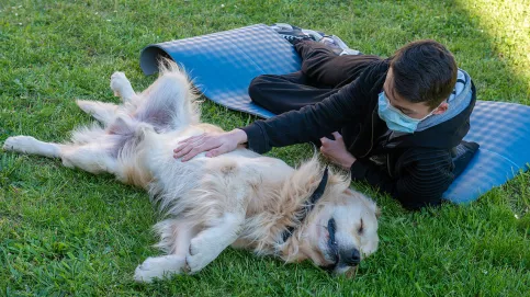 Avec les chiens, les jeunes peuvent exprimer leurs sentiments et passer un moment apaisant. © Michel Le Moine/Apprentis d’Auteuil