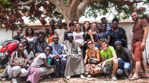 L'équipe du chantier de solidarité de juillet 2018 au Sénégal pose pour la postérité autour de Sadio Coulibaly, ancien tirailleur-combattant qu'ils viennent de rencontrer.