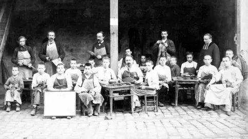 Sur le terrain envahi par les ronces, une maison à colombages, qui a visiblement connu des jours meilleurs. La toiture fuit, les vitres sont cassées, les planchers menacent de s’effondrer, les mauvaises herbes et la poussière règnent en maîtres. Dans ce quartier d’Auteuil, le voisinage s’est habitué à cette villa abandonnée. Quelle surprise pourtant quand, le 19 mars 1866, l’abbé Louis Roussel s’y installe avec six jeunes des rues qu’il a pris sous son aile : François Morel, Baptiste Ravard, Paul Dorge, Emile Gillet, Louis Hervelin, Georges Cheney. Son but ? Leur apprendre les bases du catéchisme, la lecture, l’écriture, le calcul, et les mener en trois mois à la première communion. Tout le monde se mobilise. On apporte à l’abbé matelas, couvertures, vêtements, nourriture… La grande aventure d’Apprentis d’Auteuil commence avec cette première initiative, baptisée Œuvre de la Première Communion.