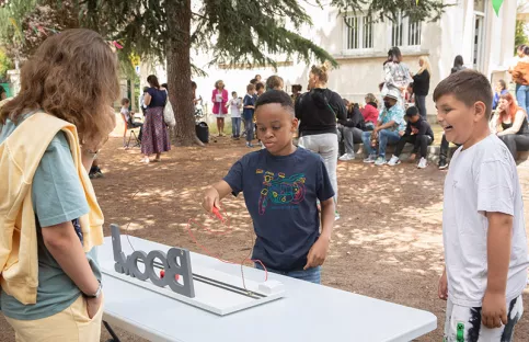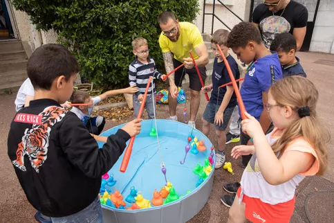 15h. Petits et grands se retrouvent dans la cour, pour écouter l’orchestre du projet musique… et assister à la remise des Oscars de la classe cinéma. “Je voulais récompenser les enfants pour leur travail. Ils ont écrit le scénario, joué, créé les décors, le dinosaure et les araignées qu’on voit dans le film…”, explique Léa Bovinelli. Aya, Maryam, Robin, Guillaume… Les 10 élèves sont appelés par l’enseignante et foulent le tapis rouge qu’ils ont réalisé cette année. “Avec leurs étoiles comme sur Hollywood Boulevard”, précise-t-elle ! “Je suis fière d’avoir participé au court-métrage et joué le rôle principal”, témoigne Aya, 9 ans, sa statuette à la main et des étoiles dans les yeux. 15h30. Buvette, chamboule-tout, pêche à la ligne ou puissance 4 géant… la kermesse est ouverte.